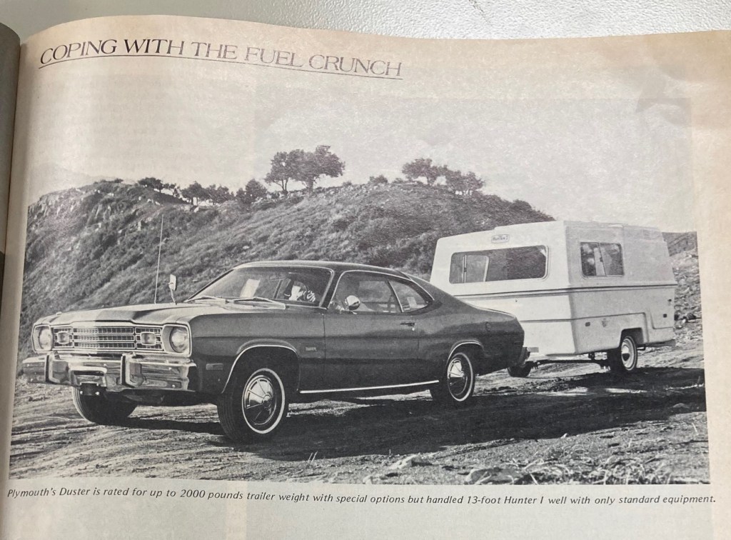 Hunter Compact camper trailers were always marketed as the camping solution for owners of economy cars. Consumer interest in fuel economy probably helped Hunter’s sales, and fuel shortages likely forced it out of business. Hunter was one of many RV manufacturers that did not survive after the shortages in petroleum imports America experienced in 1974. The Recreational Vehicle Dealers’ Association reported that an estimated 200 manufacturers closed their businesses due to the Energy Crisis. Hunter Industries’ inventory was sold at auction on August 12, 1975.